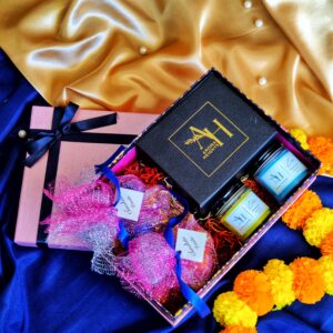 Shubh Deepawali Gift Hamper- Dry Fruits & Lakshmi Ganesh Scented Candle (Rose Bloom)