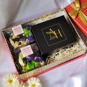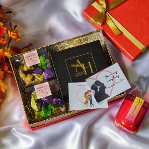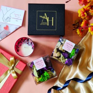 Send a ‘Gulaab’ to your special someone with an added touch of sweetness. This Valentine’s Day Gift Hamper is curated with a beautifully hand-poured candle featuring a rose scent and two boxes of exotic chocolate treats.