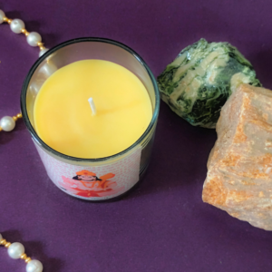 Infused with the traditional loban fragrance, this eco-friendly soy wax candle purifies the air and creates a serene spiritual atmosphere. You can use it to gift on the occasion of Kanjak or light it in your mandir.
