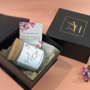 Perfect for Mother’s Day, birthdays, or just to say “thank you,” this elegant candle creates a peaceful ambience while reminding her how much she means to you. Packaged in a sophisticated frosted jar with a cork lid, it’s a thoughtful and timeless gift for moms everywhere.