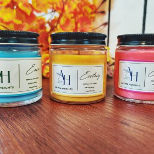 Handcrafted, natural soy wax candles, in aesthetic clear jars.